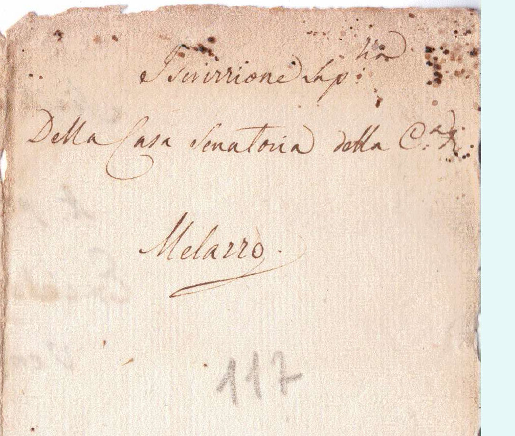 Il foglio inedito, sito in archivio privato, riporta il testo di una lapide apposta nella Casa Senatoria della Città, da identificarsi con Palazzo Carrozza, se la data, poco comprensibile, è riferibile al 1806. Di difficile comprensione pure il testo che si riporta di seguito: